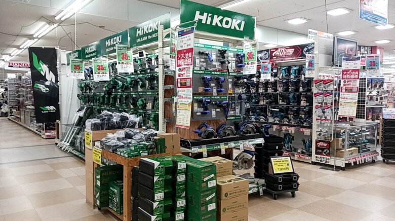 マキタやHiKOKI(ハイコーキ)といった、職人が使うガチの電動工具の展示数が凄いです。