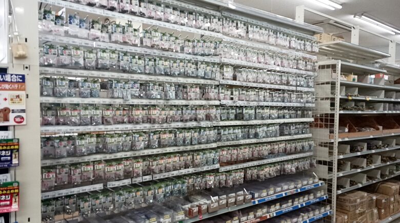 福岡東店に行って驚くのが、その細かすぎる品揃え。 例えば、ネジ一つとっても「長さが数ミリ違うだけ」で数十種類並んでいたりします。